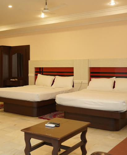 Our Triple Deluxe A/C Room is designed to provide enhanced space, comfort, and style for families and small groups. With spacious interiors, comfortable bedding, and modern amenities, the room ensures a relaxing and enjoyable stay.