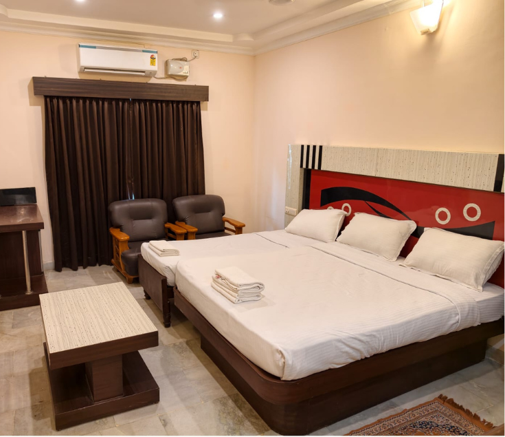 Our Triple Deluxe A/C Room is designed to provide enhanced space, comfort, and style for families and small groups. With spacious interiors, comfortable bedding, and modern amenities, the room ensures a relaxing and enjoyable stay.Fully air-conditioned and well-appointed with essential facilities, the Triple DLX A/C Room offers the perfect combination of luxury, convenience, and warm hospitality.